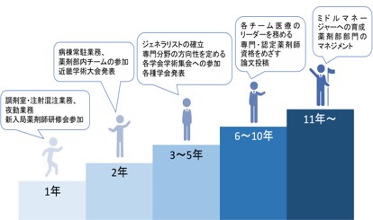 専門・認定薬剤師 | 日本医療薬学会医療薬学専門薬剤師(1名)、日本医療薬学会医療薬学指導薬剤師(1名)、日本医療薬学会がん専門薬剤師(2名)、日本医療薬学会がん指導薬剤師(1名)、日本病院薬剤師会がん薬物療法認定薬剤師(1名)、日本臨床腫瘍薬学会外来がん治療認定薬剤師(3名)、日本緩和医療学会緩和薬物療法認定薬剤師(1名)、日本化学療法学会抗菌化学療法認定薬剤師(2名)、日本糖尿病療養指導士(4名) |