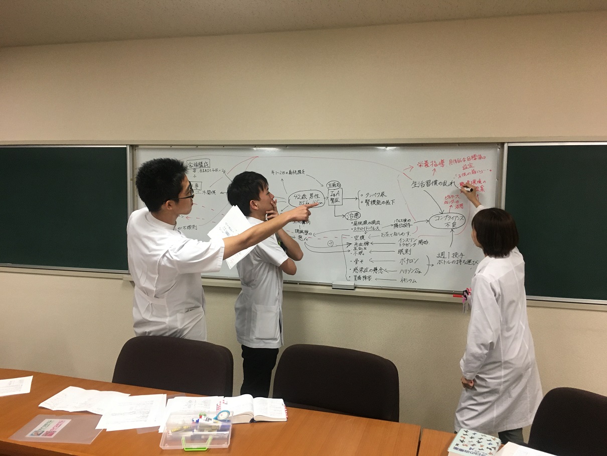 岡山大学病院では,ディスカッションを主体とした参加型の研修とメンターによる新人サポート体制を提供しています.研修では,新人同士でディスカッションを行い,知らないことをお互いで教え合い,さらに経験豊富な先輩薬剤師からフィードバックをもらいます.より実践的な薬剤師の考え方も習得させることを目的としています.