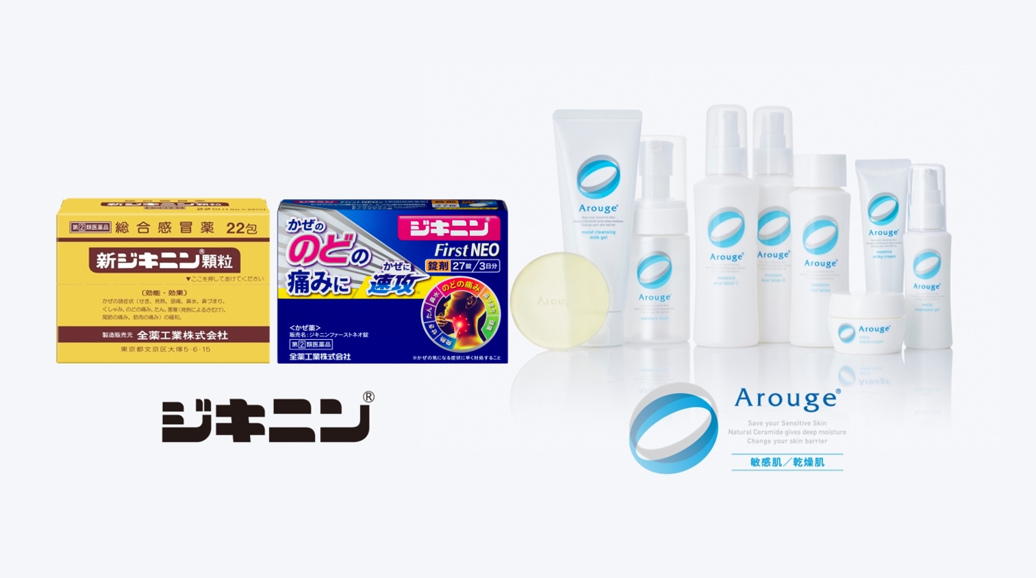 | 沿革 | 1950年 全薬工業株式会社 設立 1951年 点眼薬「ルパールA」発売 《第1号製品》 鎮痛剤「シチン液」発売 胃腸薬「ガロニン錠」発売 1954年 栄養剤「乳児用リリーフッド」発売 1955年 全国皮膚病薬研究会発足 1958年 総合感冒薬「ジキニンC錠」発売 《ジキニンシリーズの始まり》 総合保健薬「ドックマン」発売 1959年 全薬販売株式会社 設立 1963年 カルシウム剤「カタセ錠」発売 胃腸薬「バック液」発売 1965年 滋養強壮剤「リコリスゼンヤク」発売 1977年 水虫薬「コザック」発売 1978年 弱酸性石鹸「ロモコート」発売 1980年 抑肝散製剤「アロパノール」発売 《新たな市場を開拓》 1983年 「新ジキニン顆粒」発売 1991年 米国IDEC社(当時)とバイオテクノロジー新薬の共同開発開始 1994年 「ペラゾリン細粒」発売 「養生食品 鮭亜鉛」発売 《健康食品市場に本格参入》 1997年 健康補助食品「ヘルスメイト」シリーズ発売 1998年 敏感肌・乾燥肌用「アピットジェル」発売 《アルージェの前身》 2000年 「ゼフナート」発売 2001年 「リツキサン」発売 敏感肌用基礎化粧品「アルージェ」シリーズ発売 2004年 年齢に応じたうるおいケアを提案する基礎化粧品「ジュレリッチ」シリーズ発売 2006年 栃木工場ISO14001取得 2011年 通販事業開始 通販専用製品「オーラパール」発売 2012年 「ジキニンIP」シリーズリニューアル 2013年 通販専用製品「オーラパール洗口液6.8」発売 2014年 抑肝散製剤「アロパノール内服液」発売 口腔咽喉薬「ジキニンのどクリア」発売 「ジュレリッチエタン」ライン発売 2015年 鎮痛鎮痙剤「アルクラック内服液」発売 2017年 「アルージェ」シリーズリニューアル 2018年 「ジキニンファースト顆粒N」発売 通販専用製品「オーラパールマウススプレー」発売 2019年 「ジキニンファースト錠」発売 通販専用製品「オーラパールプラス 歯みがき剤」発売 2020年 ビタミン含有保健剤「アロパノールドリンク」発売 「アルージェ エンリッチ」ライン発売 「ジュレリッチ リュール」シリーズ発売 除菌剤「ピーズガード」シリーズ発売 2021年 滋養強壮ドリンク剤「ドックマンシグマ」発売 通販専用製品「ミコモイ」シリーズ発売 2022年 全薬ホールディングス株式会社 設立 抑肝散製剤「アロパノールメディカル」シリーズ発売 「ジキニンFirstNEO」シリーズ発売 「ジキニンメディチャージ」シリーズ発売 「アルージェ」スペシャルライン発売 男性用スキンケア「レアリ・ド・ジュレリッチ」シリーズ発売 2023年 通販専用製品『オーラパールプラス(グレープフルーツミント風味)歯磨き剤』発売 2024年 グループロゴ・カラー公開、HPリニューアル 水虫薬「ラミシール」シリーズ販売開始 通販専用製品『オーラパールデンタルリンス』発売 全薬工業75周年 「ヤクミン」が全薬グループ公式キャラクターに就任 2025年 「ジキニンC錠」発売 |