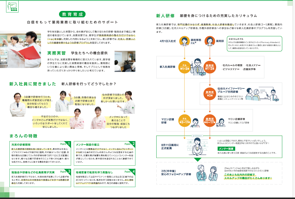 東京都八王子を中心に東京、神奈川に地域を限定して20店舗の調剤薬局を展開しております。「地域の皆様に笑顔になってほしい」「かかりつけ薬局として患者様の健康づくりに貢献したい」という思いから、健康フェアなどを開催して地域の皆様へ健康について考えていただくきっかけづくりをしています。基本となる保険調剤事業の他に、医療モール支援事業、医療機関情報の提供、OTC・サプリメント事業、在宅事業、教育育成事業など計6つの事業を展開しております。採用は新卒採用を主としており充実した新入社員研修制度が整っております。その他定期社内勉強会、階層別研修等全社員向けの研修も充実しております。
