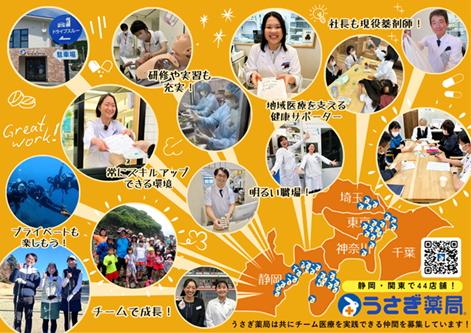 [地域密着型の医療介護を通じた社会貢献] うさぎ薬局は望まない転勤はありません。その理由は、自分の愛着のある街で、長く患者さんと向き合って欲しいからです。従って転勤しなくても年収が下がるようなことはありません。