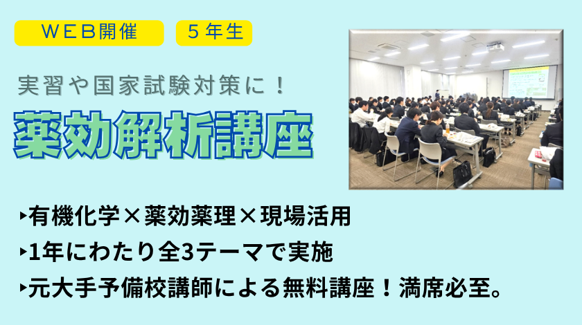 ※カリキュラム上薬学部5年生以上の専門知識を必要とするため