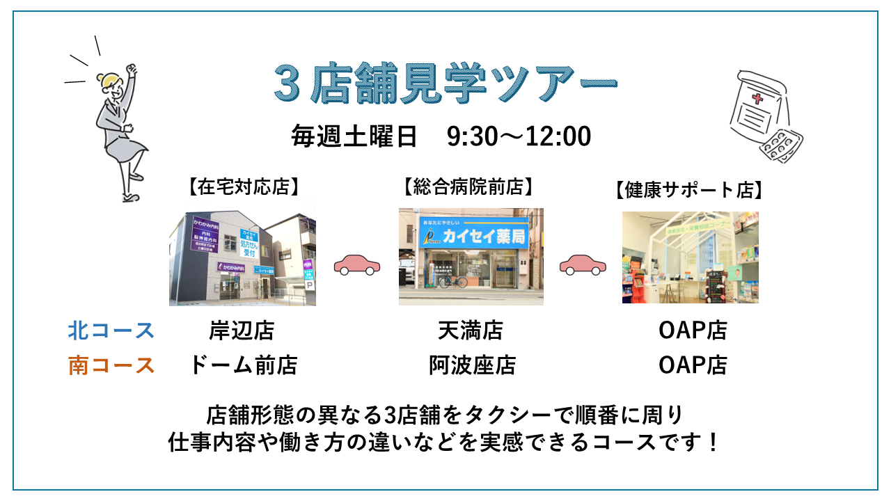 - ・【薬剤師対象】薬局の様々な形を見る!3店舗見学ツアー!