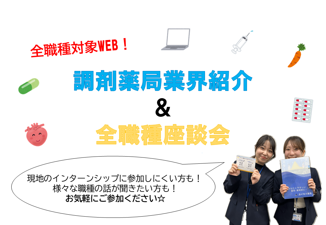 - ・【全職種対象WEB】調剤薬局業界紹介+全職種座談会