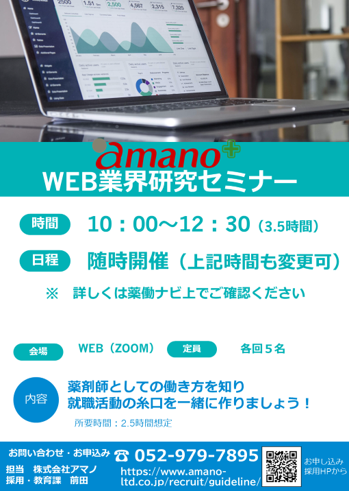 - ・【amano-美容と健康のトータルサポート企業-】薬剤師が関わる業界研究(WEB)